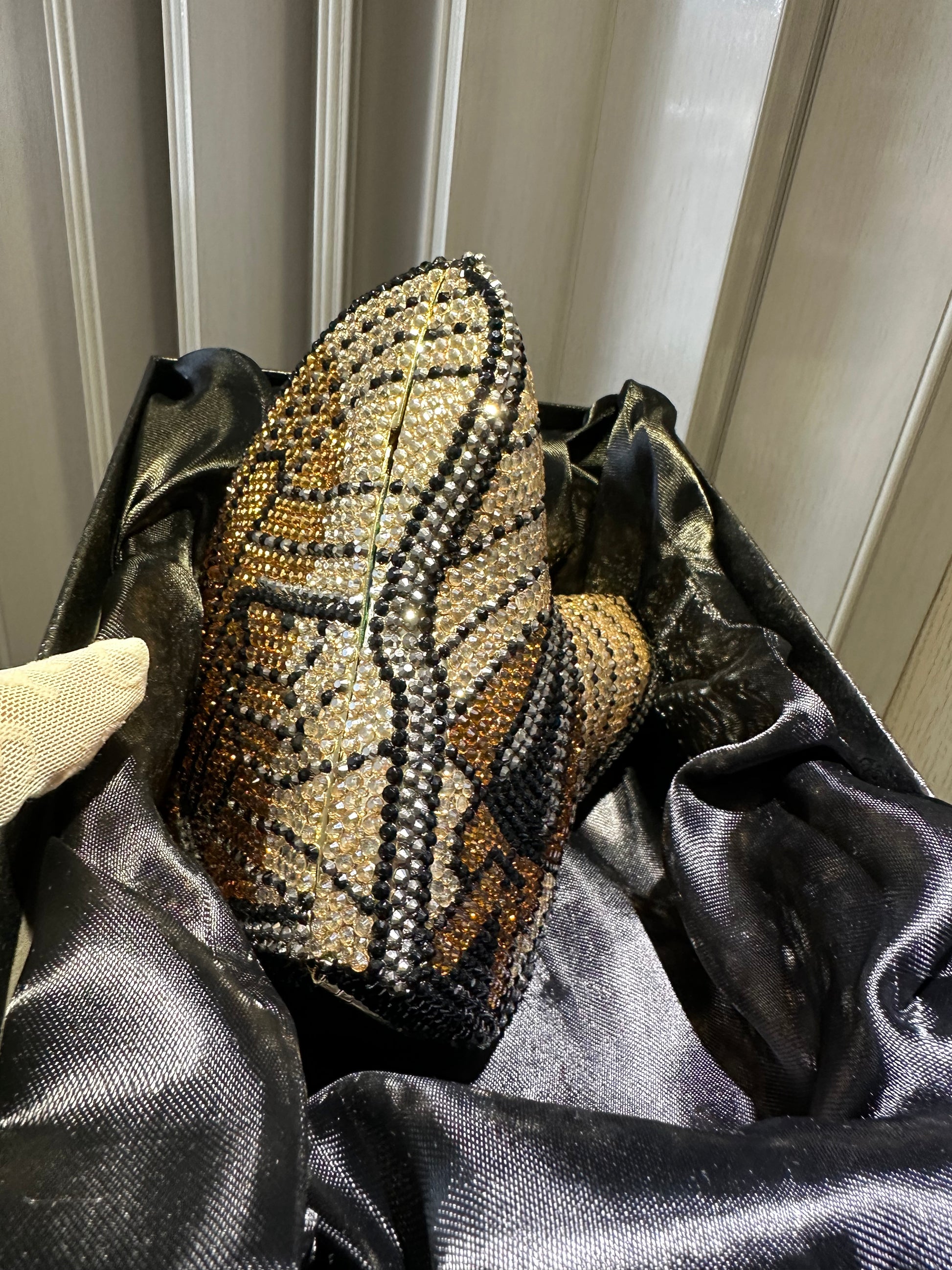 Elevate your evening ensemble with this exquisite butterfly-shaped crystal clutch, a dazzling statement piece that exudes timeless elegance. Handcrafted with intricate rhinestone beadwork, this luxurious mini purse captures light beautifully from every angle, adding a delicate shimmer to your look.