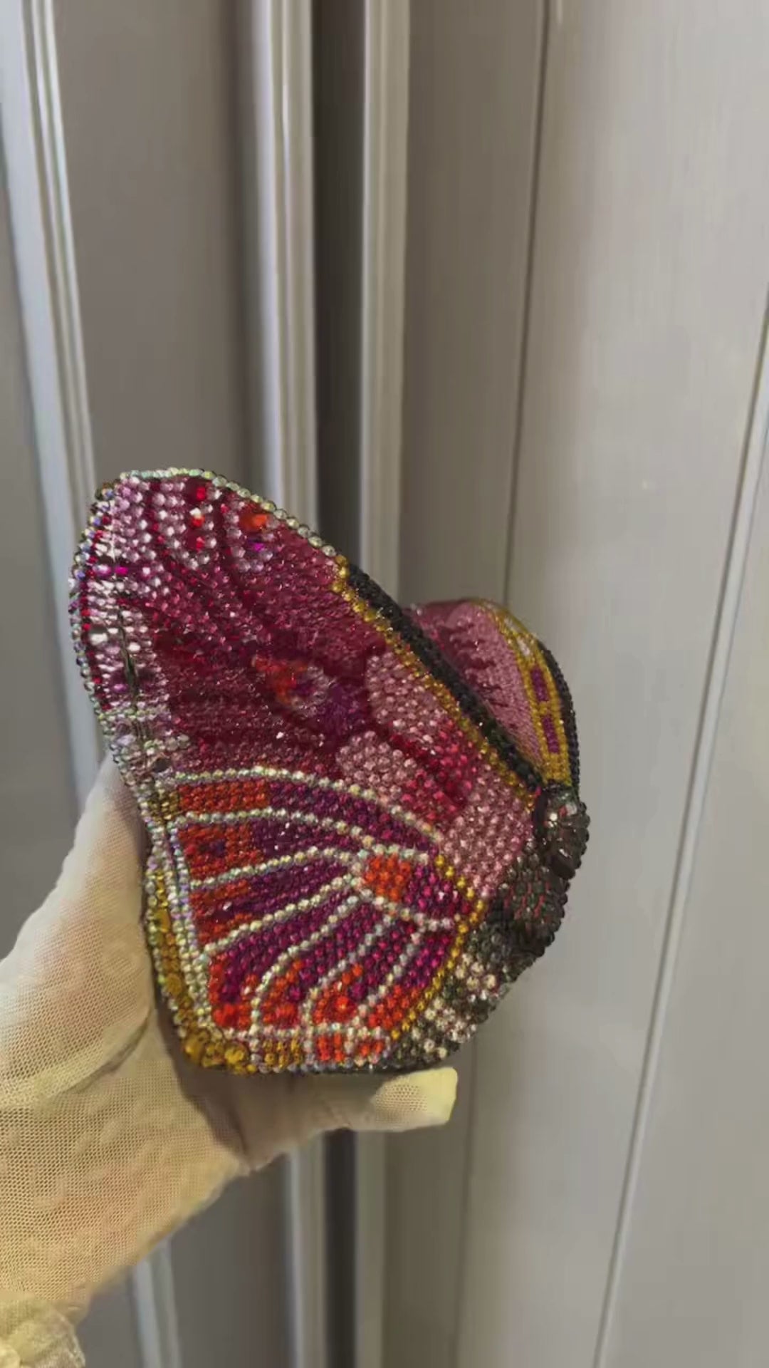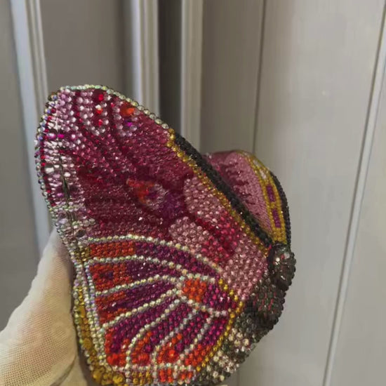 Elevate your evening ensemble with this exquisite butterfly-shaped crystal clutch, a dazzling statement piece that exudes timeless elegance. Handcrafted with intricate rhinestone beadwork, this luxurious mini purse captures light beautifully from every angle, adding a delicate shimmer to your look.
