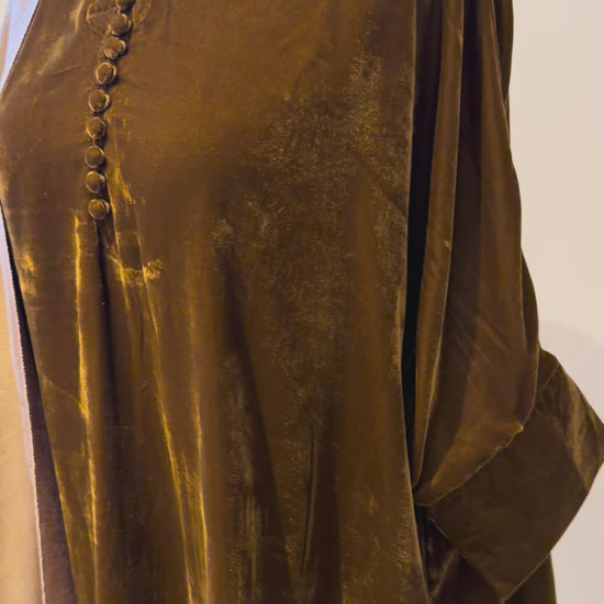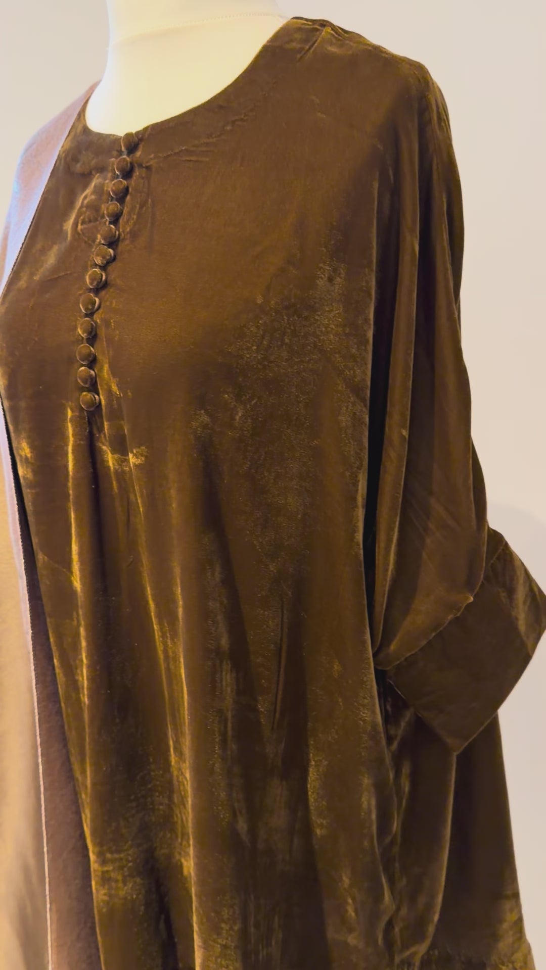 A brown color relaxed fit short shirt styled with a skinny shalwar and a moonlight stole, perfect for an evening out.