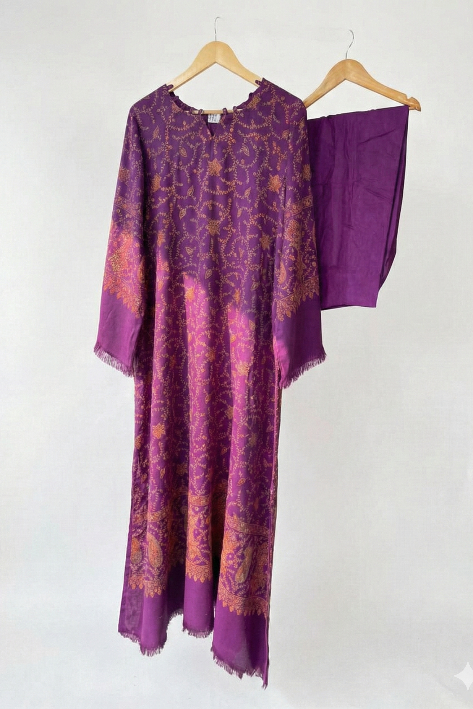 A chic plum pashmina kaftan paired with straight pants elegant, comfortable, and perfect for any occasion.