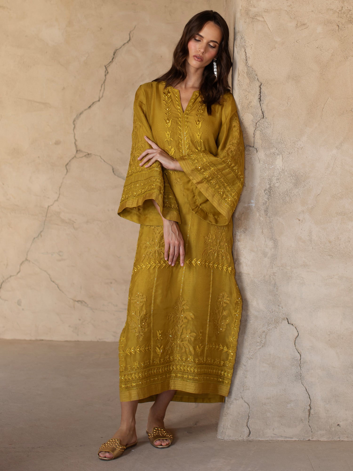 Crafted from golden lime organza, the Savannah features fine applique work inspired by persian floral motifs. Perfect for moonlit celebrations or daytime festivities, this ensemble is a wardrobe staple for the discerning festive dresser.